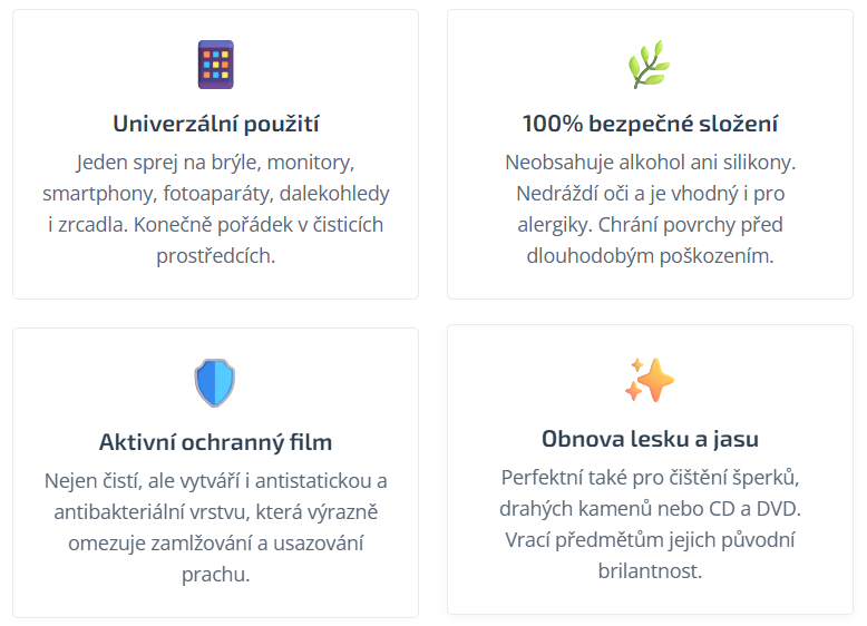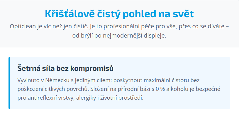 „Kvalitní obchod a výrobek na čištění brýlí, displejů a různých ochranných skel. Děkuji.“