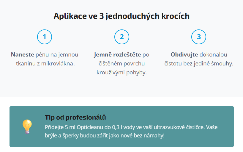 Aplikace přípravku Opticlean